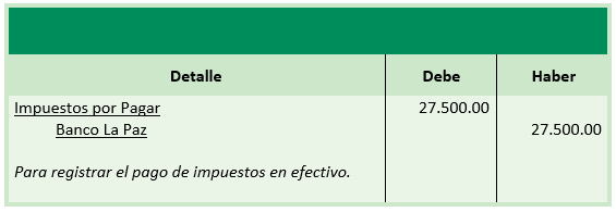 4) Pagar Impuestos. Se paga con cheque del Banco La Paz.