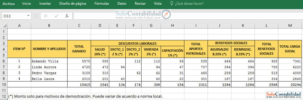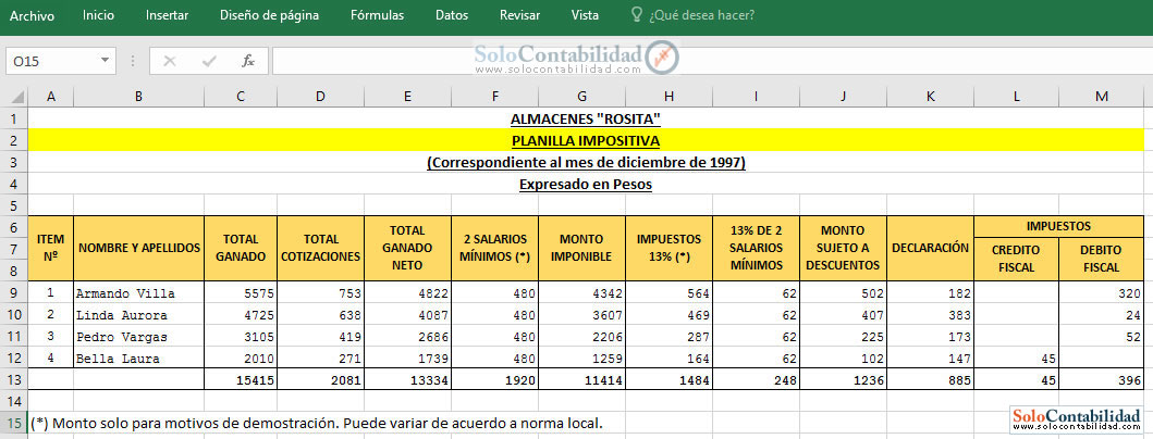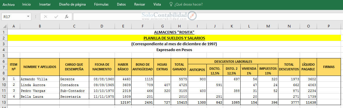 A Continuación Ilustraciones de las Planillas de Sueldos y Salarios para el Ejemplo desarrollado en el tema.